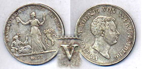 1 Thaler 1833 W / KM570 IST: 28,90 Gramm, Feinguß, Münze etwas keilförmig SOLL: 28,06 Gramm |