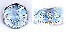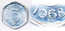 3 Paise 1968 (C) Calcutta