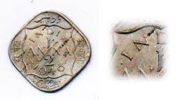 Calcutta (C) = Punkt vor und nach INDIA (1946 und 47) Bombay (B) = der Strich vor und nach dem Datum ist mit einem Punkt unterbrochen (1946) |