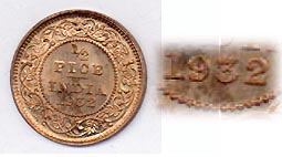 1/2 Pice Kupfer 1932 (C) Calcutta |